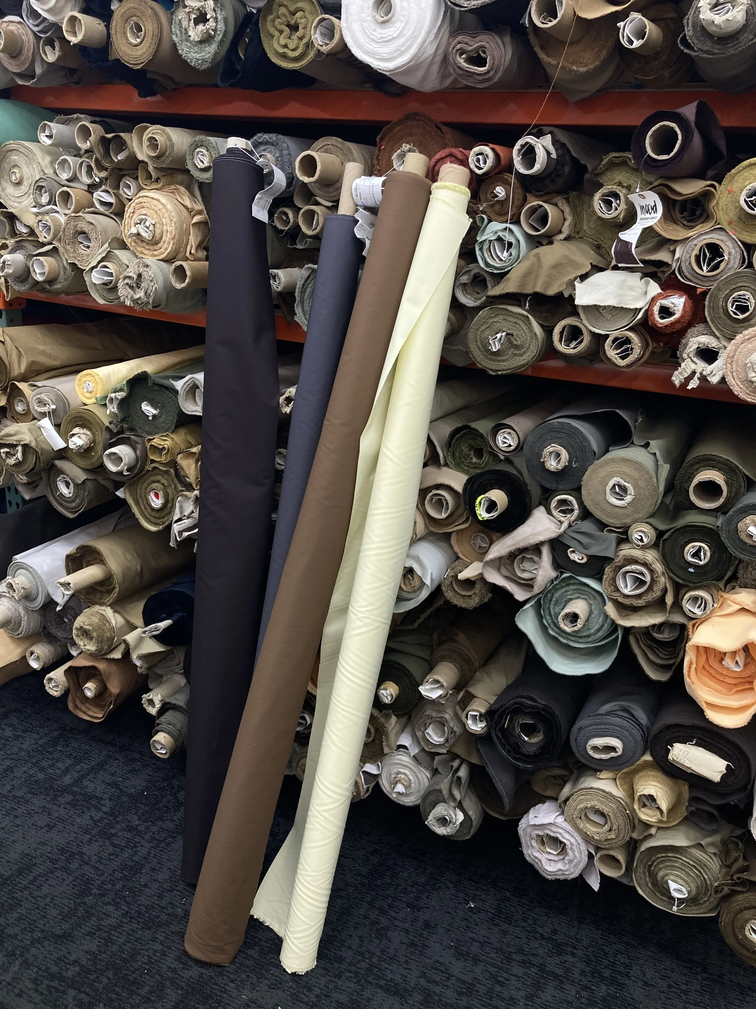 Deadstock fabric selection based on material composition and color.